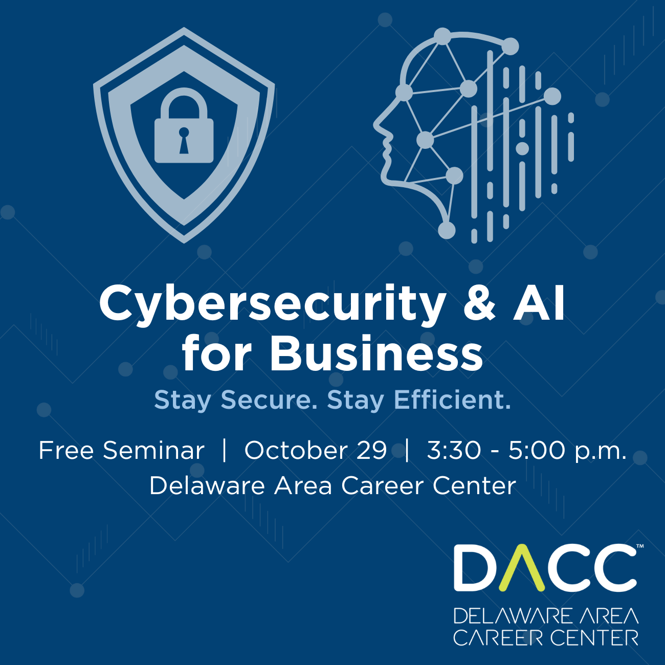 We are excited to invite our business partners and community professionals to an upcoming seminar you won’t want to miss. Join us for “Cybersecurity and AI for Business” on Wednesday, October 29, 2025, from 3:30–5:00 p.m. at the Delaware Area Career Center. Hosted by the DACC Ohio Technical Center’s Office of Customized Business Training, this FREE seminar will provide practical strategies your organization can use to: Strengthen cybersecurity practices Leverage artificial intelligence to streamline operations and improve efficiency Whether you’re a small business owner, IT professional, or decision-maker in your company, this event will equip you with the tools you need to stay secure and stay efficient in today’s digital age.