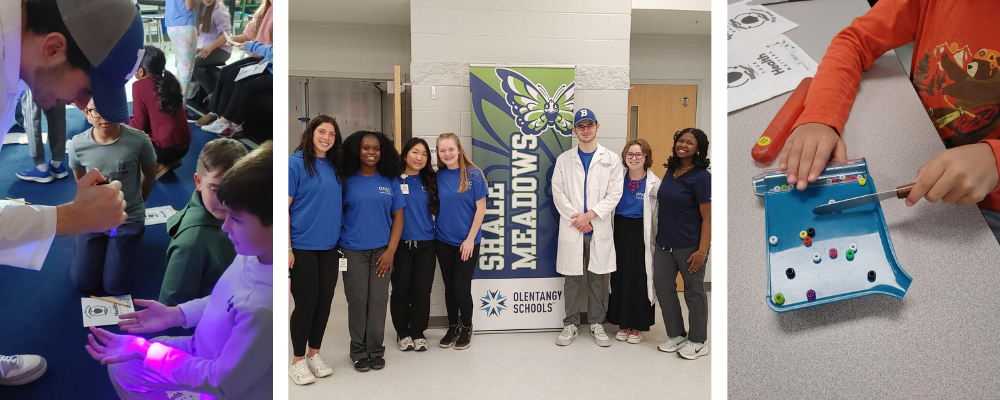 DACC recently partnered with Shale Meadows Elementary School in the Olentangy School District as part of the school’s Health Week Project-Based Learning (PBL) experience. DACC student ambassadors from healthcare pathway programs led engaging, hands-on sessions for 4th grade students focused on dental hygiene, nutrition, proper handwashing, physical fitness, and safe medication use.