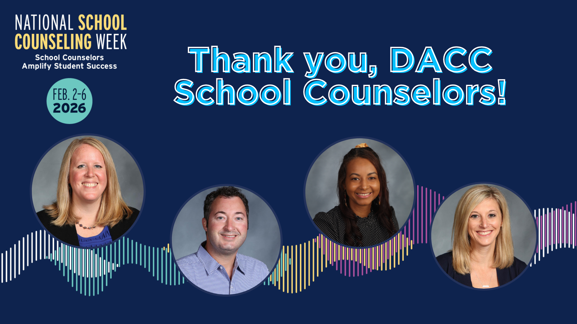 February 2nd - 6th is National School Counseling Week, which coincides with the time when our DACC counselors are helping current students schedule for next year, make plans for life after high school, and assist future students through the application process for the upcoming year. We appreciate our counselors for all they do to help students across Delaware County feel empowered, prepared, inspired, and connected. |